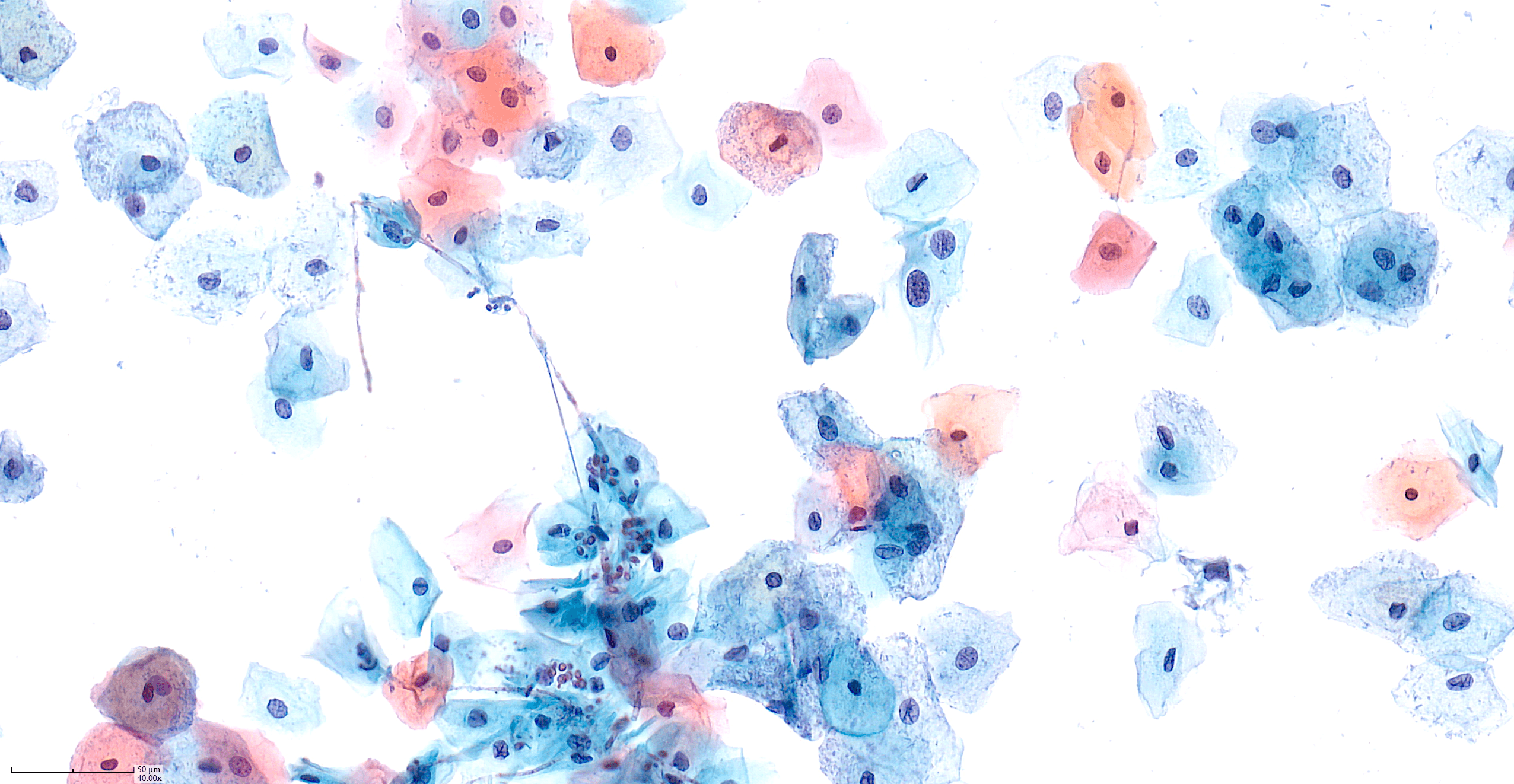 Reactive changes of the nuclei, 1,5 to 2 times the size of an intermediate nucleus, could be caused by inflammation of pathogens like bacterial vaginosis, Candida, Trichomonas vaginalis, etc.