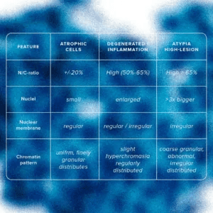 To effectively distinguish these cells, the following criteria are indispensable for diagnosing atrophic and atypical cells (3):